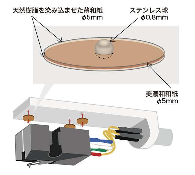 適度な硬さと柔らかさを持つネジがアームへの振動伝播を抑制し、金属ネジでは得られないクリアな音質を実現。