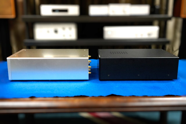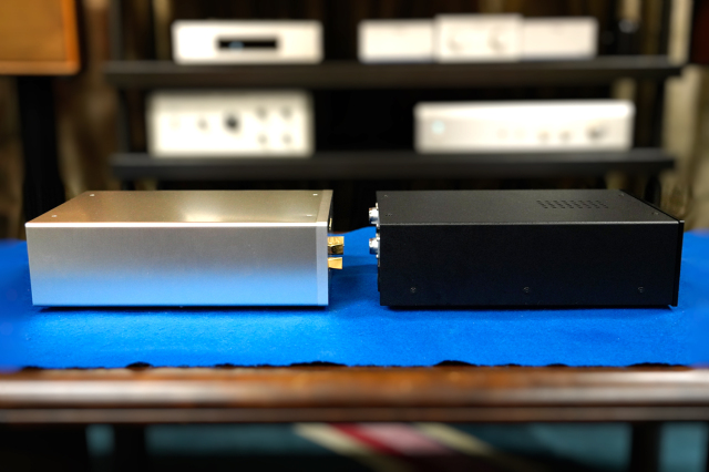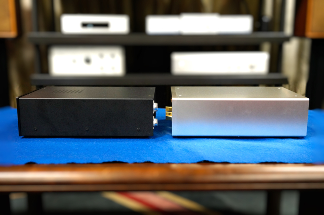 MCトランスを内蔵し、左右に分割されたフォノイコライザー部と別筐体電源部の構成、さらに専用追加電源を用いて電源部の完全モノラル化を実現するセット構成です。